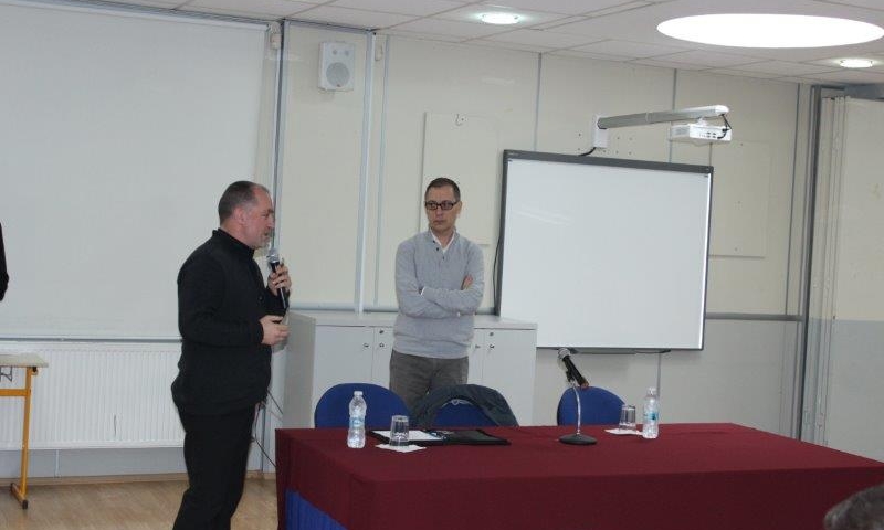 Këtë tryezë e hapi drejtori i QSE “Don Bosko”, Don Dominik-Skender Qerimi, i cili fillimisht uroi mirëseardhje dhe më pas i dha fjalën profesorit dhe prezantuesit të mirënjohur, Adi Krasta.
