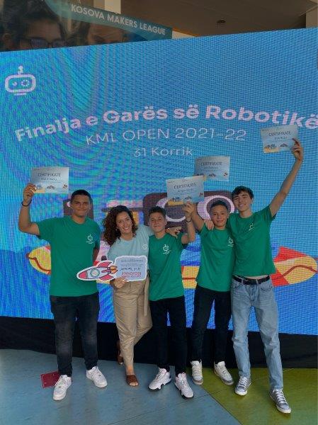Nxënësit Ilirjon Dushi, Orik Begu, Mal Klinaku, dhe Jon Dubova bashkë me mentoren Jozefina Dodaj përfaqësuan Shkollën në këto gara me grupin e quajtur RoboTech. Ata u renditen në pozitën e tretë dhe fituan të drejtën e përfaqësimit Shkollës në garat rajonale.